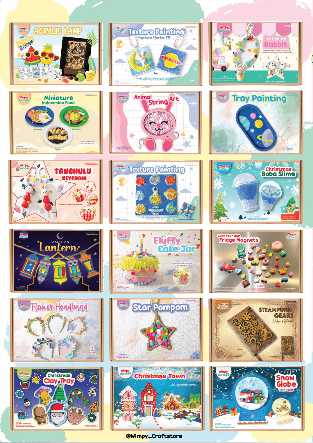 Wimpy Craftstore, surga kreativitas tanpa batas yang menyediakan beragam bahan dan paket kerajinan tangan yang lengkap dan mudah dikerjakan, baik di toko maupun di rumah. Setiap paket dilengkapi instruksi detail dan video tutorial, menjadikannya pilihan hadiah yang unik dan berkesan. Istimewanya, Wimpy Craftstore menawarkan lebih dari 400 varian paket kerajinan dan selalu menghadirkan produk baru.